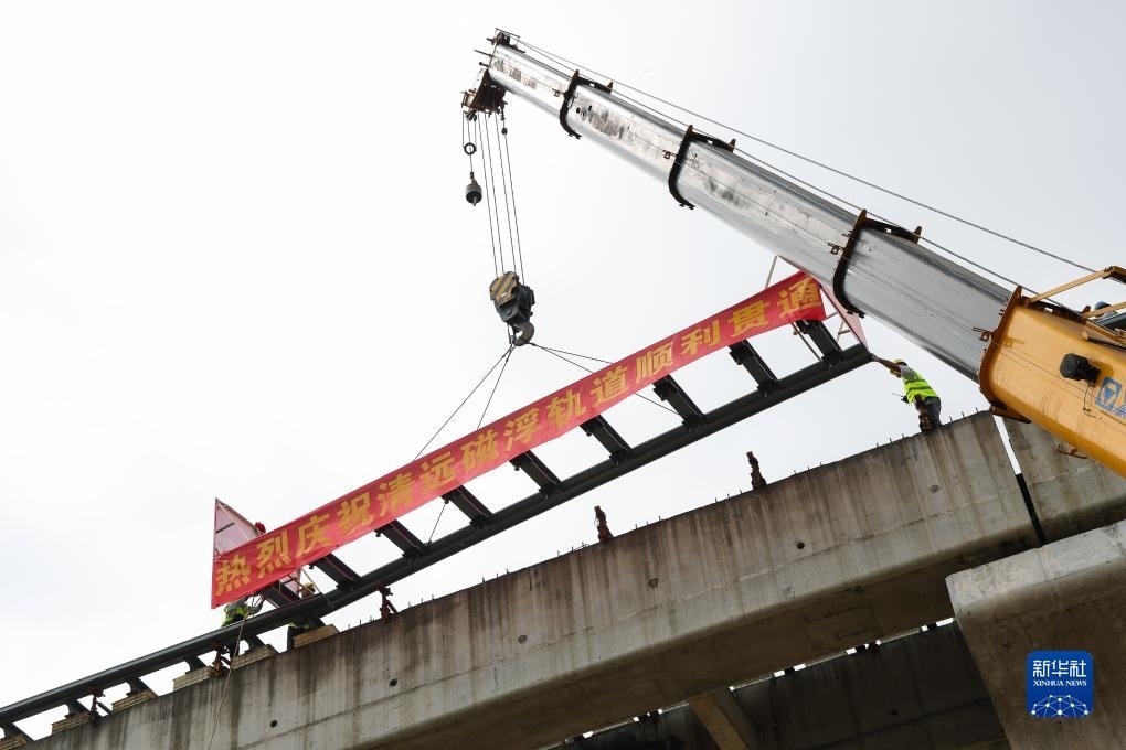 8月10日,廣東清遠磁浮旅游專線最后一榀軌排被吊裝到橫跨京廣鐵路的長隆特大橋上。