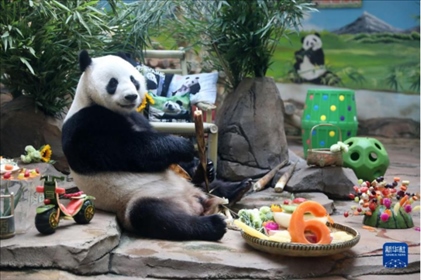 8月11日是大熊貓“剛剛”(小名“青城”)的6歲生日,鞍山動(dòng)物園為它準(zhǔn)備了特制的生日大餐,眾多市民游客前來為它慶生。
