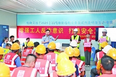 浙江杭州民警為外來務(wù)工人員講解防范電信網(wǎng)絡(luò)詐騙知識。新華社發(fā)
