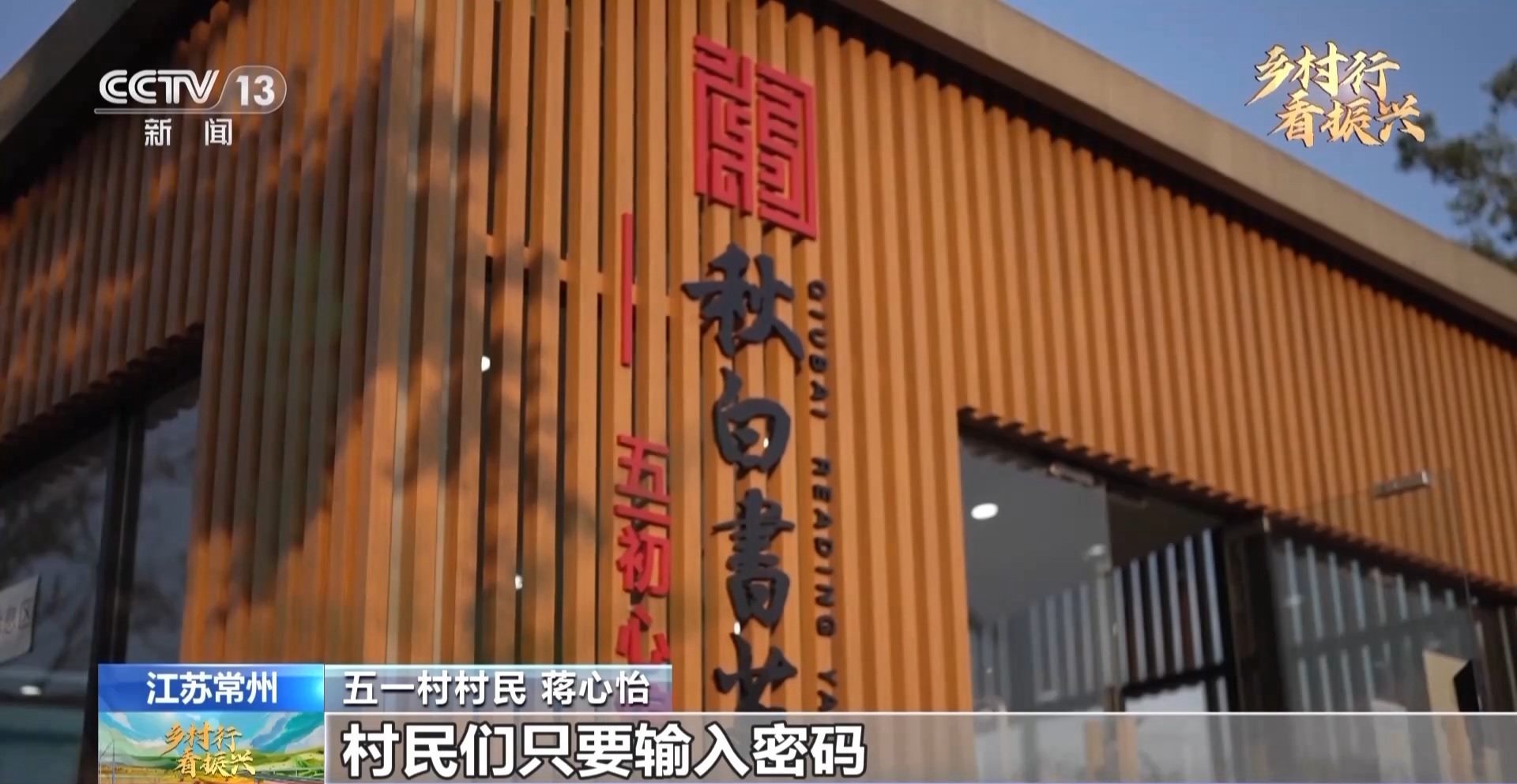 江蘇常州五一村村民 蔣心怡:我叫蔣心怡,是個(gè)土生土長(zhǎng)的五一村人。今天我想帶大家去看看我們村的秋白書(shū)苑。這個(gè)圖書(shū)館24小時(shí)免費(fèi)開(kāi)放,村民們只要輸入密碼,就可自由進(jìn)出。