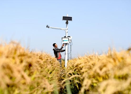 10月15日,樂亭縣數字循環(huán)現代農業(yè)園區(qū)內,工作人員在調試監(jiān)測設備。(受訪單位供圖)