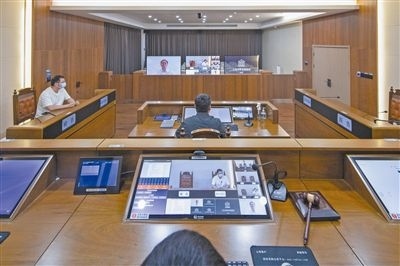 圖③:智慧建設(shè)。圖為諸暨法院楓橋人民法庭在審理一起民間糾紛案件中,因當(dāng)事人一方遠(yuǎn)在外地,故組織雙方線上開(kāi)庭,當(dāng)事人表示相當(dāng)滿意。