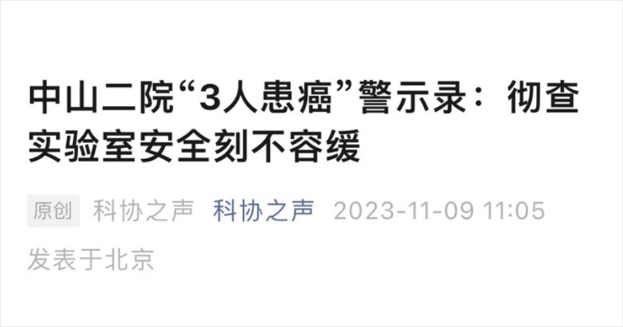 ·中科協(xié)就中山二院事件發(fā)聲:徹查實(shí)驗(yàn)室安全刻不容緩。實(shí)地探訪:網(wǎng)傳拆除中山二院爭(zhēng)議實(shí)驗(yàn)室純屬誤會(huì),其實(shí)是因消防隱患拆除了實(shí)驗(yàn)室過(guò)道的柜子,里面的設(shè)備、儀器等一切正常。