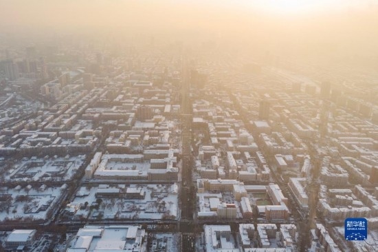 這是11月9日拍攝的哈爾濱主城區(qū)雪景(無(wú)人機(jī)照片)。