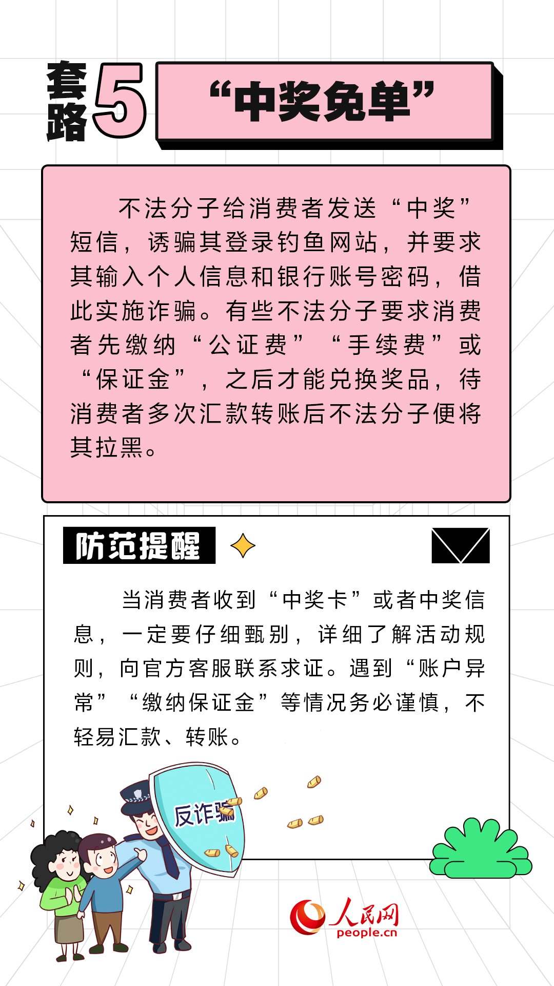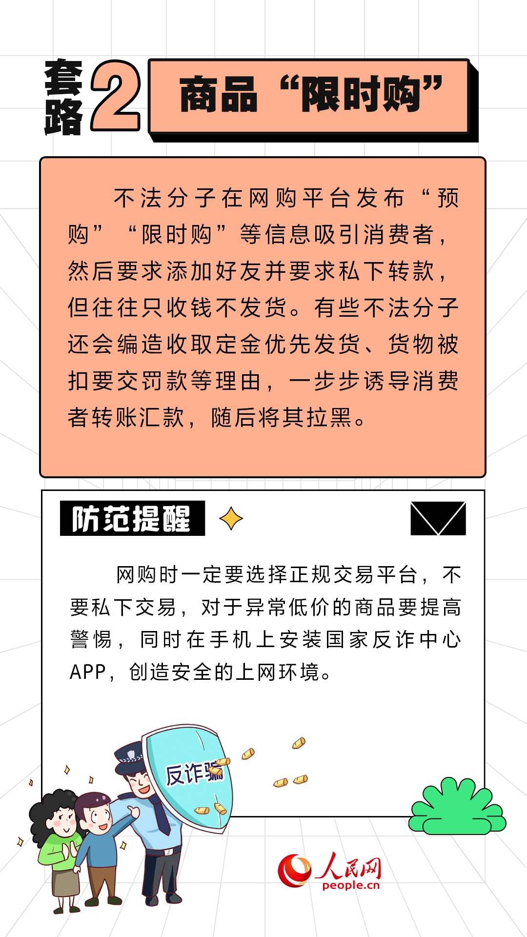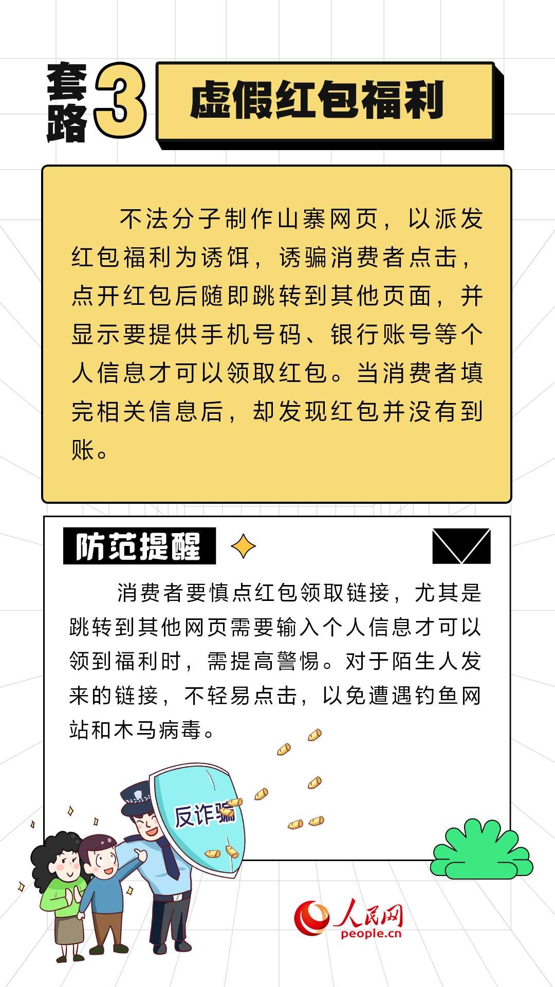 人民網(wǎng)北京11月10日電 (周靜圓)近期,“雙11”促銷活動如火如荼地進(jìn)行中。不法分子也伺機(jī)而動,設(shè)置各式各樣陷阱。人民網(wǎng)“求真”欄目整理了六種常見的套路,提醒大家提高警惕,守好“錢袋子”。