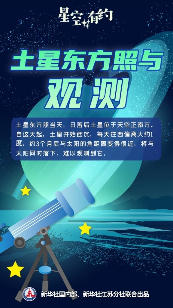 “土星東方照當(dāng)天,日落后土星位于天空正南方。自這天起,土星開始西沉,每天往西偏離大約1度,約3個(gè)月后與太陽(yáng)的角距離變得很近,將與太陽(yáng)同時(shí)落下,難以觀測(cè)到它。”王科超說。
