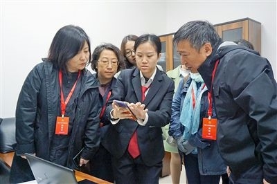 最高人民法院第五巡回法庭干警為代表演示群眾來信一鍵回復。