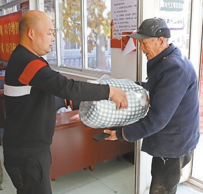 上午10時(shí),走進(jìn)碼頭村黨群服務(wù)中心,正碰上73歲老人杜金亭騎著電動三輪車,載著老伴來領(lǐng)新棉被。為保障困難群眾冬季取暖,涿州市民政局為全市殘疾人、“六類人群”免費(fèi)發(fā)放過冬棉被。杜金亭的老伴肢體殘疾,是低保戶?!靶路颗渖闲旅薇?,這個(gè)冬天不愁了!”取上新棉被,杜金亭邀請記者去新家看一看。