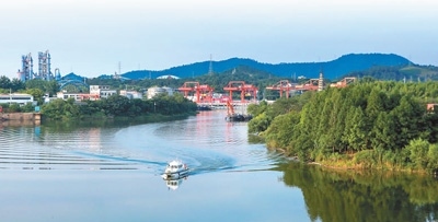 一艘水上執(zhí)法艇在安吉縣遞鋪街道西苕溪航道巡邏。圖為潘學(xué)康攝