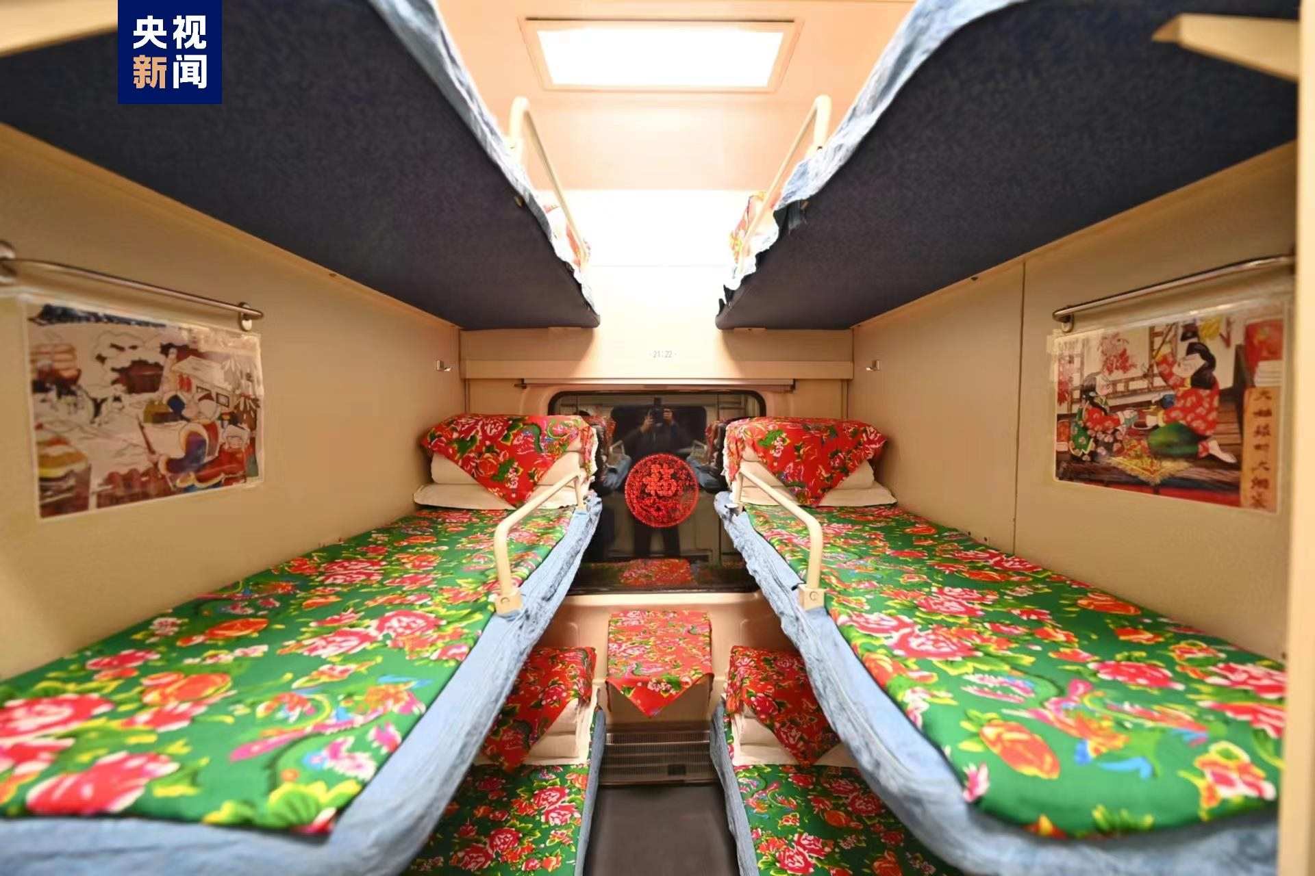 記者從中國鐵路哈爾濱局集團有限公司獲悉,首列東北民俗文化旅客列車著力呈現(xiàn)出有溫度、有煙火氣、可互動的主題形態(tài),更加注重氛圍營造與文化內(nèi)涵提升,嘗試突出對部分臥鋪車廂、餐車進行特色定制,車廂內(nèi)部裝飾包含“最北人家”“喜迎豐收”“跨年狂歡”等主題場景,加入了沉浸式互動演繹和東北農(nóng)家樂元素。