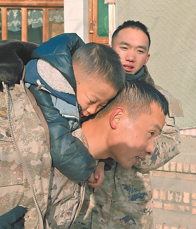12月19日,西部戰(zhàn)區(qū)第76集團軍某旅在積石山縣大河家鎮(zhèn)陳家小學(xué)展開救援。馮彥榮攝(新華社發(fā))