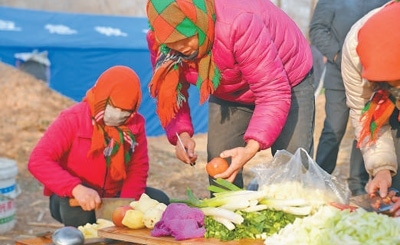 12月19日16時20分許,在青海省海東市民和回族土族自治縣金田村安置點,受災(zāi)群眾正在帳篷旁準(zhǔn)備晚飯。本報記者 賀 勇攝