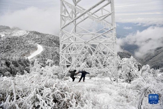 近日,湖南省遭遇一輪低溫冰凍天氣。為保障供電穩(wěn)定,12月15日,輸電運(yùn)檢工尹斌和徒弟龍昱君前往西晃山駐守觀測冰情。他們將在西晃山值守,直到天氣轉(zhuǎn)暖、冰雪消融……