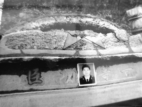 詹忠義烈士的墓碑上有一張帥氣的軍裝照,刻著“一等功臣”。詹忠義母親抑制不住內(nèi)心的悲傷,喊著兒子的乳名,雙手不斷擦拭著兒子的照片和上沿的五角星,嚎啕大哭起來。