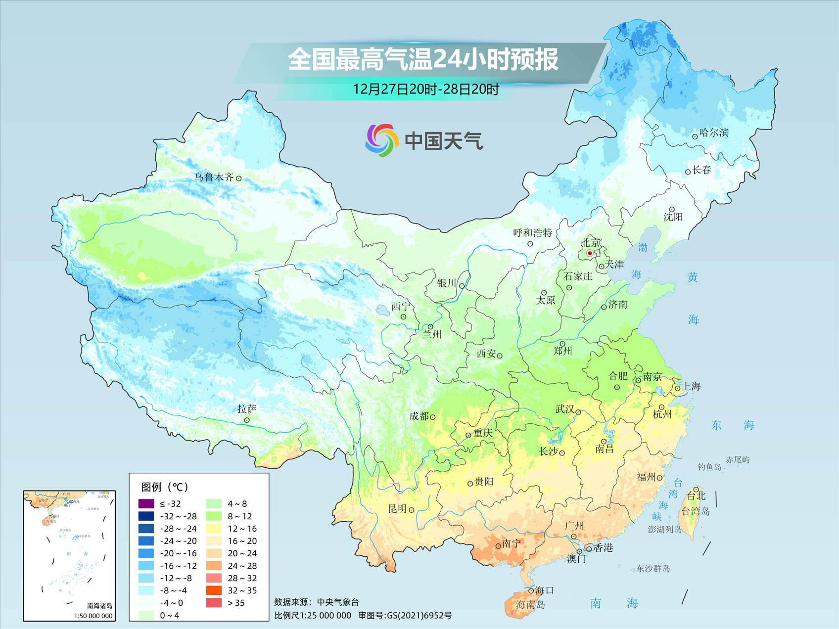 伴隨著回暖,27日上午冰凍線已退居長(zhǎng)江流域,回歸到常年同期正常位置。