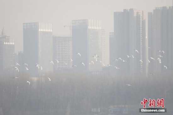 1月11日,河南三門峽,來自蒙古國和西伯利亞的數(shù)千只大天鵝前來越冬。如今,當(dāng)?shù)貞{借適宜的氣候和優(yōu)良的生態(tài)環(huán)境,成為中國境內(nèi)大天鵝棲息越冬的主要目的地之一。圖為一群天鵝飛過三門峽城市上空。