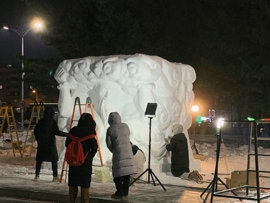 能夠與冰雪“親密接觸”,中國(guó)美術(shù)學(xué)院的熊竣苓要感謝剛剛在哈爾濱落幕的第十六屆國(guó)際大學(xué)生雪雕大賽。他所在的團(tuán)隊(duì)由包括他在內(nèi)的4位南方同學(xué)組成,他們創(chuàng)作的雪雕作品《盤古開天》獲得了一等獎(jiǎng)。這段比賽經(jīng)歷讓第一次去哈爾濱的熊竣苓非常難忘,“最近哈爾濱很火,雖然我是去參加比賽的,但能去哈爾濱一趟,也非常激動(dòng)了。我記得我們從機(jī)場(chǎng)到酒店的路上,透過車窗看到了霧凇,一下子就讓我這個(gè)南方人感受到了北方冬天的美。”他回憶,做雪雕時(shí),他和另外3位同學(xué)都既緊張又興奮,“我們都是第一次觸摸雪做雕塑,此前在學(xué)校練習(xí)時(shí)是用泥巴或石膏,跟雪是完全不同的質(zhì)感,所以過程中我們都小心翼翼,非常緊張;同時(shí),我們都是第一次見到這么多雪,太激動(dòng)了。”