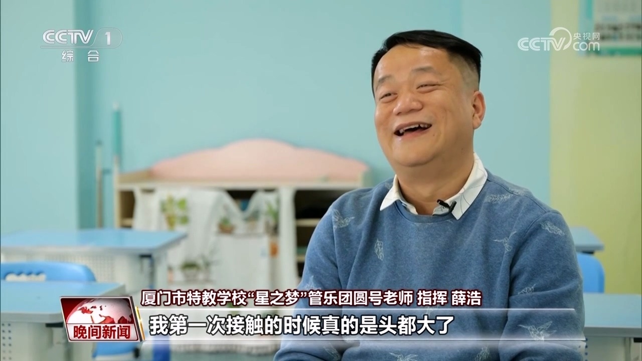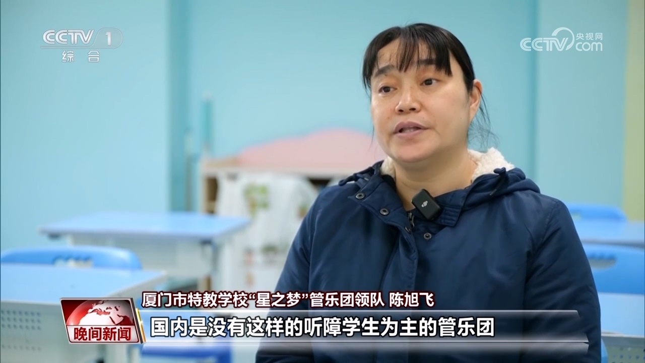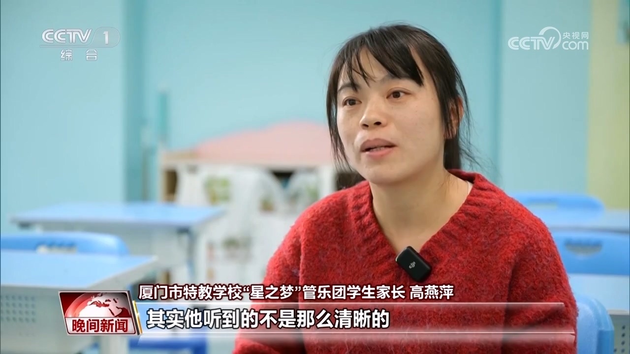 廈門(mén)市特教學(xué)?!靶侵畨?mèng)”管樂(lè)團(tuán)學(xué)生家長(zhǎng) 高燕萍:其實(shí)他聽(tīng)到的不是那么清晰的,但是他會(huì)覺(jué)得這個(gè)聲音很美,他用手語(yǔ)告訴我,他覺(jué)得很美。