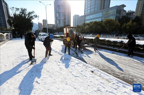 1月23日,在浙江省溫嶺市,人們在清除路面冰雪。近日,受寒潮天氣影響,我國多地迎來降溫降雪天氣,各地積極組織相關(guān)部門開展抗凝除雪工作,保安全保暢通。新華社發(fā)(周學(xué)軍攝)