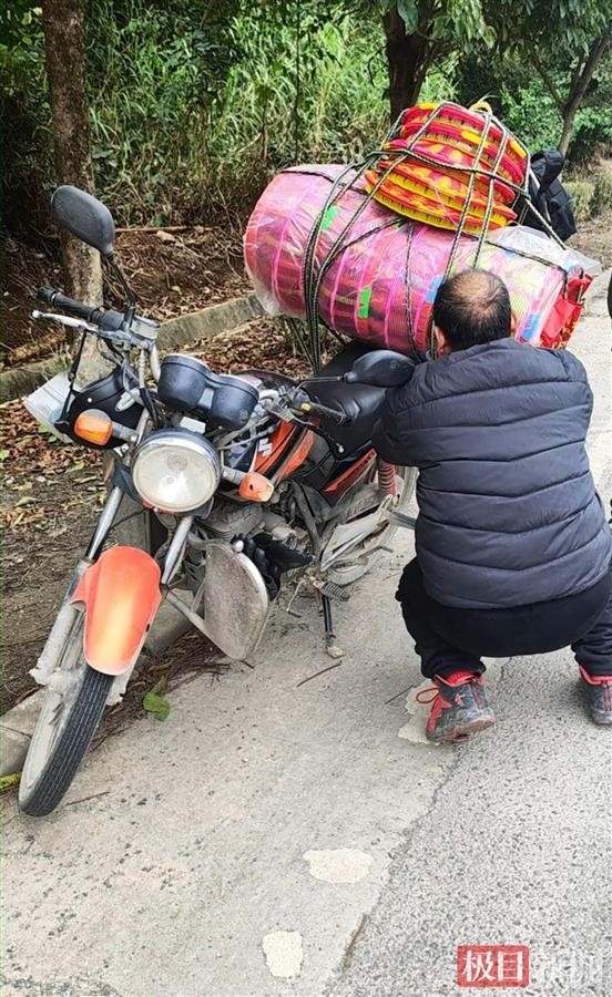 由于家里經(jīng)濟條件不好,我15歲時離開了家鄉(xiāng),到廣東肇慶、中山一帶打工,當時一直在工地上打混凝土。我和妻子是經(jīng)老鄉(xiāng)介紹認識的,2007年,她在中山一家鞋廠上班。我們是同鄉(xiāng),雙方性格又合適,第二年就結(jié)婚了?!蓖粽晗驑O目新聞記者介紹,2008年,他在肇慶買了人生中第一輛摩托車,花費了約2800元,此后的三年,他們夫妻倆和幾名老鄉(xiāng),都是騎摩托車回老家。