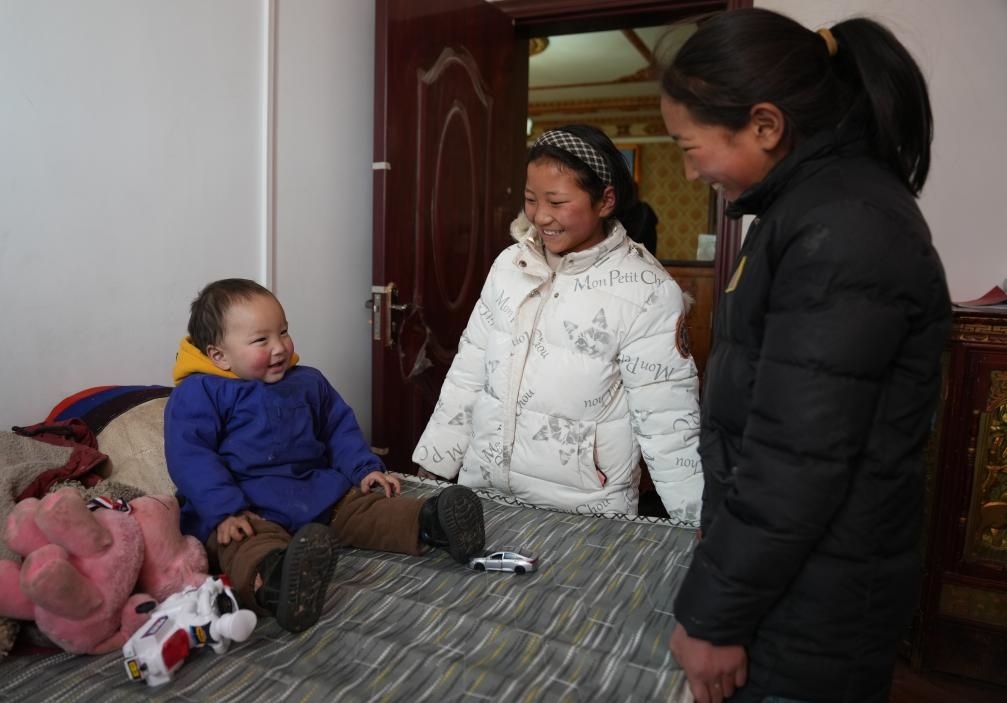 桑措的孫子孫女在家中玩耍(1月29日攝)。 新華社記者 晉美多吉 攝