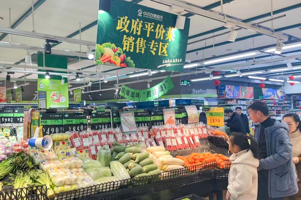 為積極應(yīng)對近期雨雪冰凍天氣影響,確保武漢市春節(jié)期間蔬菜市場價(jià)格平穩(wěn),保障市民基本生活需求,2月8日至2月12日期間,武漢市政府部署在武商、中百、中商三大商超130余家門店設(shè)置政府平價(jià)菜銷售專區(qū),銷售大白菜、包菜、白蘿卜、胡蘿卜、土豆5種蔬菜。