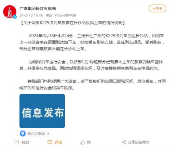 ·乘客購買K225列車“買短補長”車票后無法上車?鐵路部門回應(yīng)。
