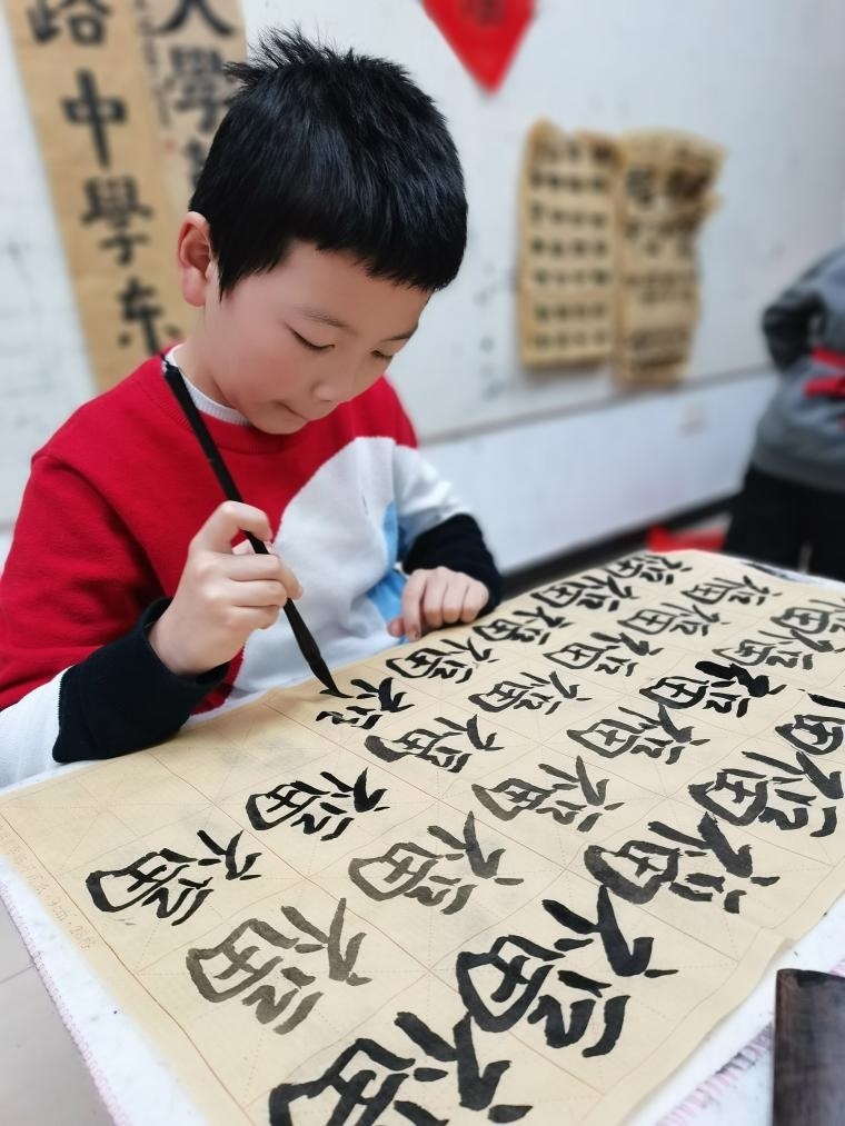 湖北省武漢市小學(xué)生參加寒假書(shū)法活動(dòng)。(受訪者供圖)