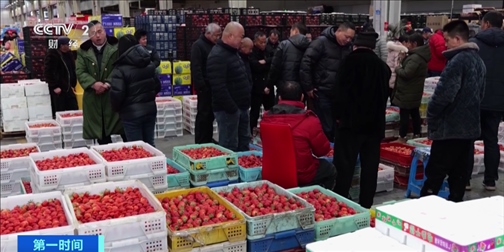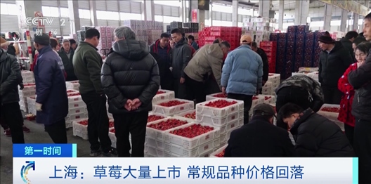 在上海青浦的西郊國際農(nóng)產(chǎn)品交易中心,草莓專區(qū)里人頭攢動。正在采購草莓的王飛表示,晚上7點左右,熱鬧的草莓區(qū)域就會被搬空,所以抓緊時間拿貨。