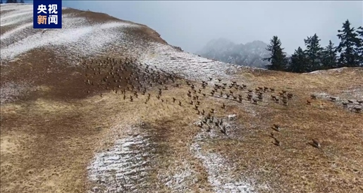 近日,甘肅祁連山國家級自然保護(hù)區(qū)寺大隆自然保護(hù)站管護(hù)人員利用無人機(jī)巡護(hù)時,拍攝到一大群巖羊在雪地覓食、追逐,據(jù)管護(hù)人員目測達(dá)200多只。