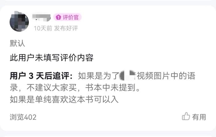 例如,在余華《我們生活在巨大的差距里》這本書的購買評(píng)論里,有人就提到,“如果是為了視頻圖片中的語錄,不建議大家購買,書本中未提到。”