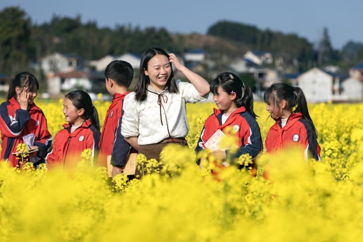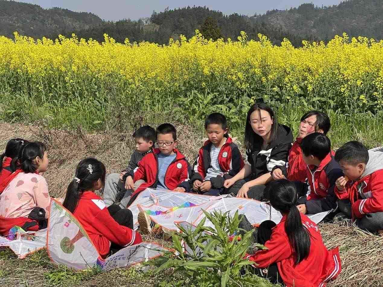李柏霖不愿意讓孩子們覺(jué)得這樣的情緒是生活的全部。她把課堂搬到野外,在“搖搖花”開(kāi)的時(shí)候帶孩子們?nèi)タ础皳u搖花”,油菜花開(kāi)時(shí)去看油菜花。花也是詩(shī),家鄉(xiāng)也是詩(shī)——若非如此,老師為什么走了又回呢?