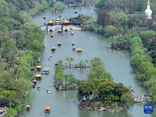 4月4日,人們?cè)诮K揚(yáng)州瘦西湖風(fēng)景區(qū)游玩(無人機(jī)照片)。