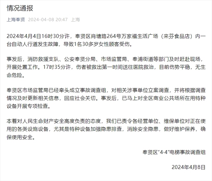 ·身體被卷入扶梯女子面臨截肢風(fēng)險(xiǎn),屬地政府及街道辦等部門均已介入。上海奉賢通報(bào)稱成立事故調(diào)查組。