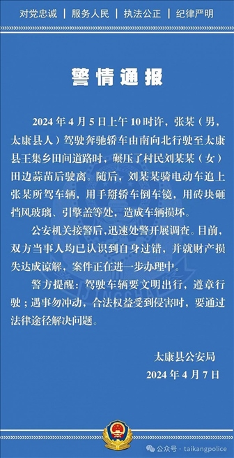·女子因蒜苗被軋壞怒砸奔馳車,河南太康警方通報(bào)。