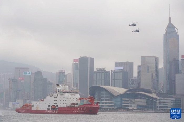 4月8日,“雪龍2”號(hào)緩緩駛?cè)胂愀奂馍尘缀_\(yùn)碼頭,展開為期5天的首次訪港行程。