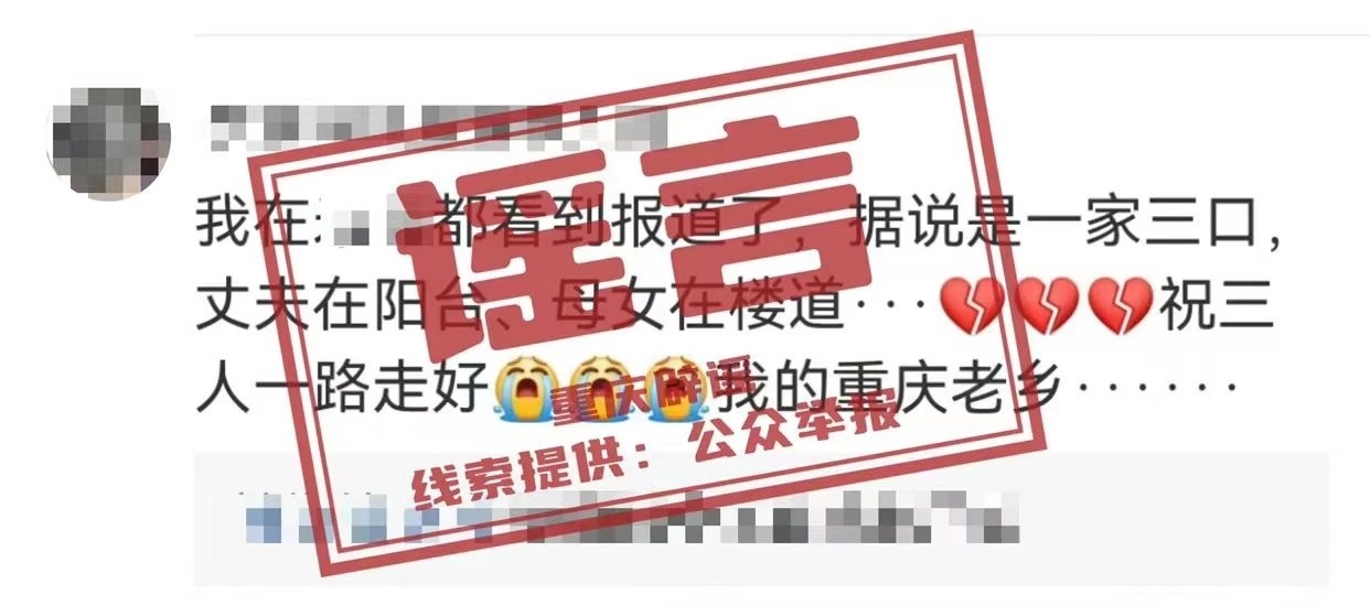 4月15日,“重慶辟謠”發(fā)消息稱,經(jīng)相關(guān)部門(mén)核查,沙坪壩、合川均未發(fā)生“一家人全部上吊而死”案件,網(wǎng)傳信息為謠言,相關(guān)視頻系某網(wǎng)民拼湊網(wǎng)上的兩起自殺事件,并杜撰虛假信息。目前,該虛假信息已轉(zhuǎn)交相關(guān)部門(mén),以對(duì)發(fā)布虛假信息者依法進(jìn)行調(diào)查處置。