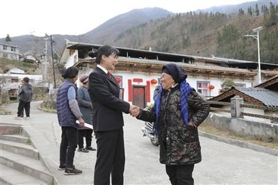 圖①:法院干警剛到彝寨,彝族同胞便聚集過來。