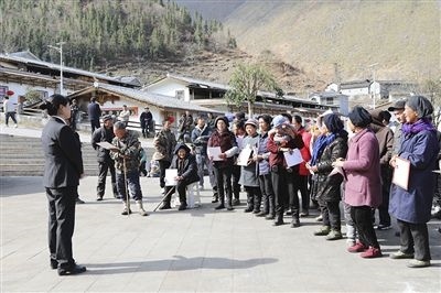 陽春三月,萬物復(fù)蘇。繁花盛開,如詩如畫。四川省石棉縣人民法院美羅女子法庭來到安順場鎮(zhèn)新場村彝寨,開展“雙語”普法活動。