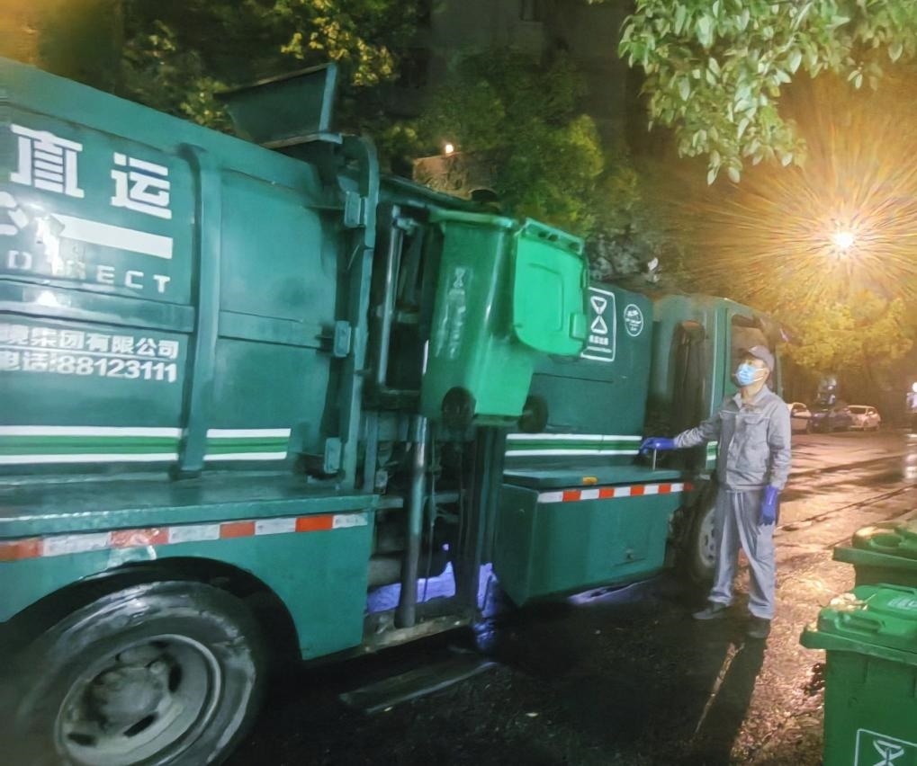 2024年5月4日凌晨,杭州市環(huán)境集團(tuán)清運(yùn)車駕駛員朱國棟在清運(yùn)垃圾。(杭州市環(huán)境集團(tuán)供圖)