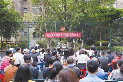 近日,江西省吉安市吉州區(qū)人民法院民事庭將巡回法庭搬進(jìn)了桃源盛景小區(qū),對(duì)三起物業(yè)服務(wù)合同糾紛案進(jìn)行了公開審理,并邀請(qǐng)社區(qū)代表、小區(qū)部分業(yè)主旁聽。巡回法庭采取了“庭審+普法”的形式以案釋法,引導(dǎo)業(yè)主合理維權(quán),倡導(dǎo)物業(yè)公司積極履行合同義務(wù),取得了良好的效果。圖為巡回審理現(xiàn)場(chǎng)。