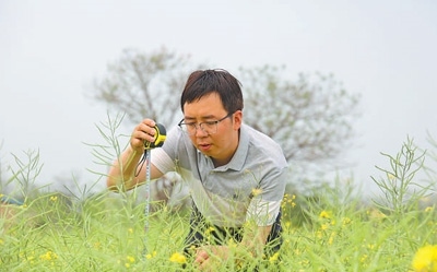 蘇丹在測量油菜株高。本報記者 原韜雄攝