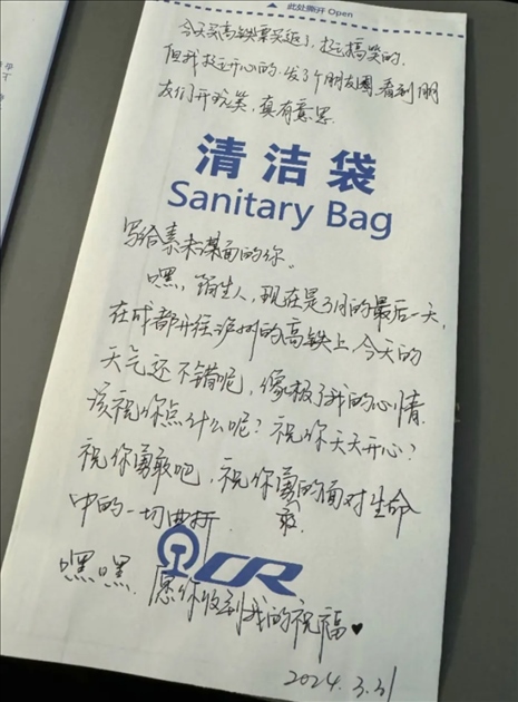 “以后應(yīng)該不會(huì)再在清潔袋上留言了