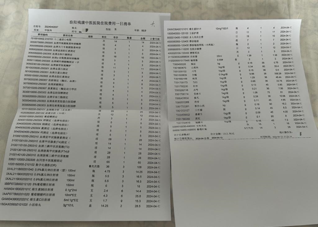 之后,在這名老人當(dāng)日的“住院費(fèi)用一日清單”上,憑空出現(xiàn)了“心電圖”“血液檢測”“尿液分析”等多個并沒有進(jìn)行檢查的檢測項目,總計花費(fèi)1313.86元?!皩?shí)際檢查也就300塊錢左右?!币晃粌?nèi)部人士透露。