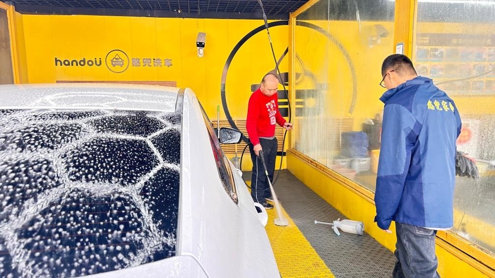 憨兜家園的員工正在洗車。新華社記者李志浩 攝