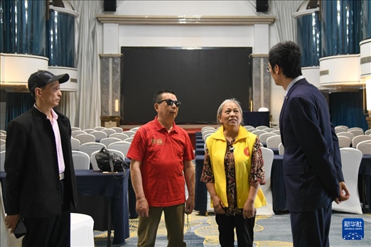 5月13日,“自強不息藝術(shù)團盲人樂隊”成員準備登臺演出。新華社記者 胥冰潔 攝