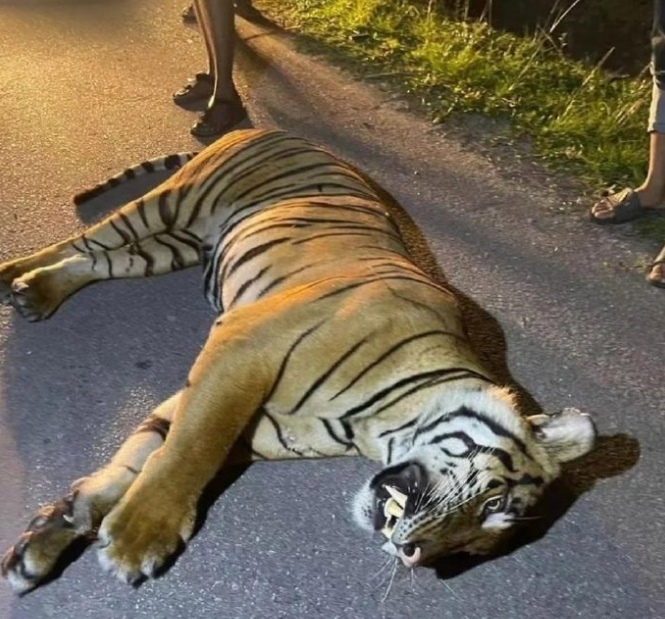 ·馬來(lái)西亞一只老虎過(guò)馬路被汽車(chē)撞死。