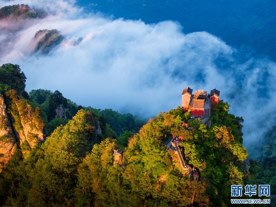 五月的武當(dāng)山,云霧升騰,浩瀚無(wú)垠,靈性的古建筑若隱若現(xiàn),如同水墨畫(huà)卷,勝似仙山瓊閣,氣勢(shì)磅礴,蔚為壯觀,給游客帶來(lái)無(wú)限遐想與向往。