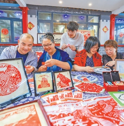 自2018年建成以來,石峽村村史博物館成為村民定期培訓(xùn)的地方,也逐漸成為游客來石峽村游玩的打卡地之一。博物館以實物、文字、影像等方式展現(xiàn)了村落歷史、非遺項目、居家生活、農(nóng)耕勞作等內(nèi)容?!拔覀冞€推出了帶有長城元素的布藝、剪紙、羽毛畫等互動體驗項目?!辈┪镳^負責(zé)人魏曉蕓說。
