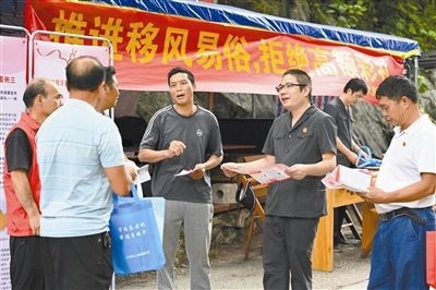 近日,廣西壯族自治區(qū)上林縣人民法院開(kāi)展“推進(jìn)移風(fēng)易俗,拒絕高額彩禮”法治宣傳進(jìn)鄉(xiāng)村活動(dòng)。法院干警通過(guò)以案釋法和分發(fā)文明婚俗倡議書等方式,為村民解讀了涉彩禮糾紛法律規(guī)定,并就村民關(guān)注的彩禮認(rèn)定范圍、返還規(guī)則以及男女雙方共同生活認(rèn)定規(guī)則等熱點(diǎn)問(wèn)題進(jìn)行了釋法答疑。圖為法院干警在和村民交流。本報(bào)記者 吳 琪 本報(bào)通訊員 韋姍婷 周 群 攝